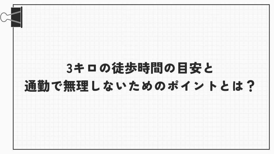 3キロの徒歩通勤は、運動としてはちょうどいい距離でも、毎日となると負担を感じることもあります。