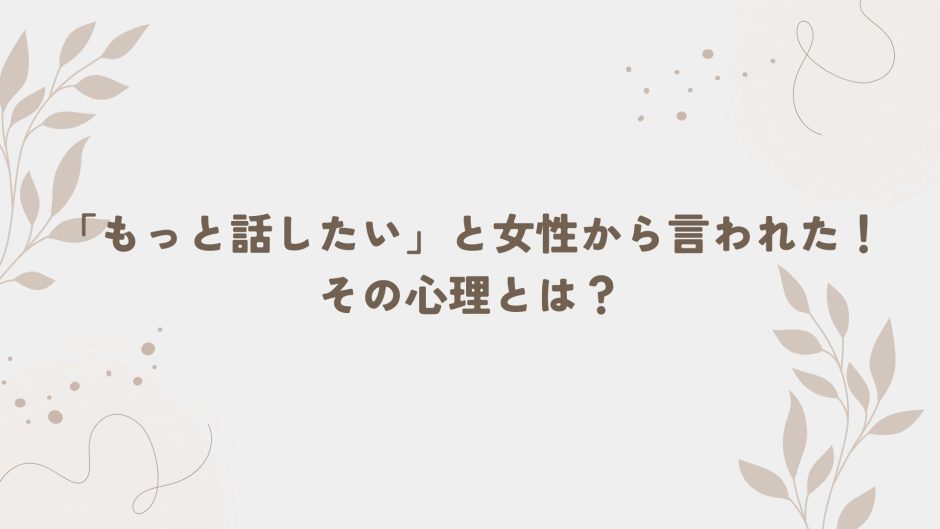 本記事では、女性が「もっと話したい」と言う心理を、状況・性格・関係性ごとに詳しく解説します。