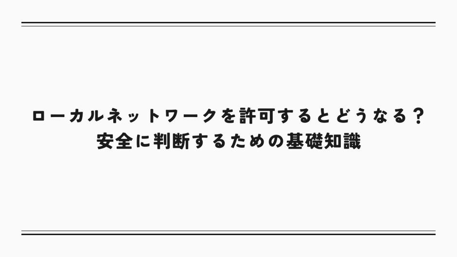 旅行中やカフェでアプリを使っているときにローカルネットワークの許可を求められると、「え?ここで?」と不安になりますよね。