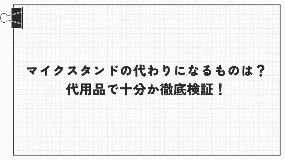 本記事では、マイクスタンドの代用品として使えるアイテムや、シーン別の使い分け、安定性や音質への影響など、実際の使用感も含めて詳しくご紹介します。