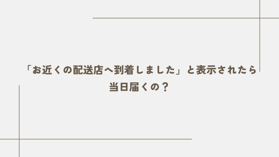 「お近くの配送店へ到着しました」と表示されたのに、今日届くのか分からず不安になっていませんか?“到着=もうすぐ配達”とは限らず、見方を誤ると期待外れになることもあります。