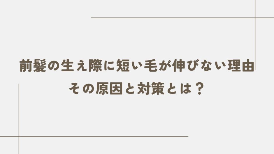 この記事では、生え際に目立つ短い毛の正体や、伸びないと感じる理由、さらには髪を育てるために見直したい習慣やケア方法まで、専門的な視点からやさしく解説しています。