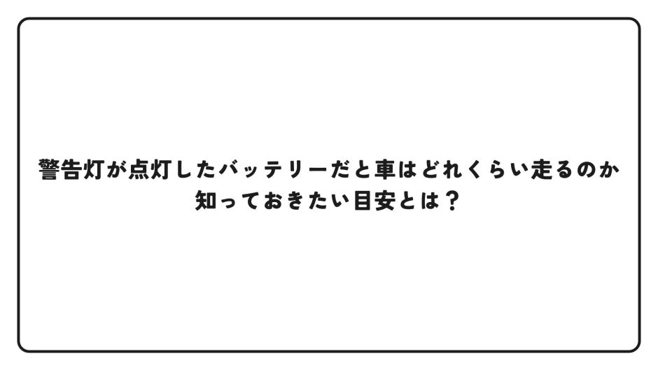 バッテリー警告灯が点灯したとき、多くの人が「あと何分くらい走れるのかな?」と考えがちです。
