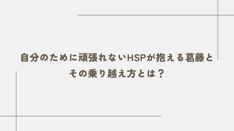 「自分のために頑張れないHSP」とは、感受性の強さゆえに、他人の感情や期待に過剰に反応してしまい、自分の心を後回しにしてしまう人です。