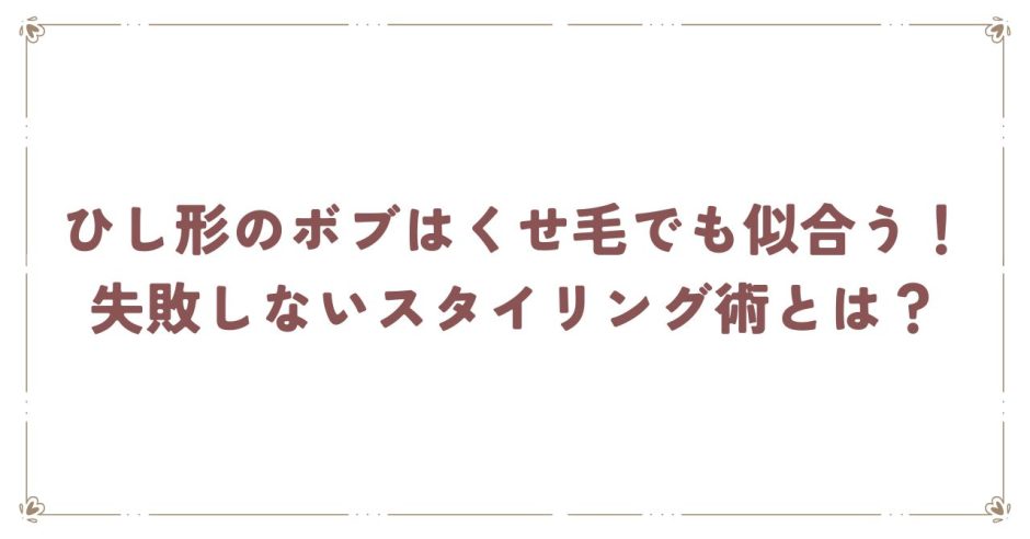 本記事では、くせ毛とひし形ボブの相性、カットやオーダーのコツ、くせ毛の種類別の似合わせ術、さらにスタイリングや失敗しないための美容院選びまでを徹底解説します。