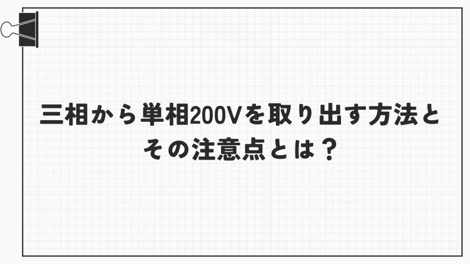このような背景から、三相から単相200Vを取り出したいというニーズは極めて実用的で、現場で頻繁に登場する課題となっています。