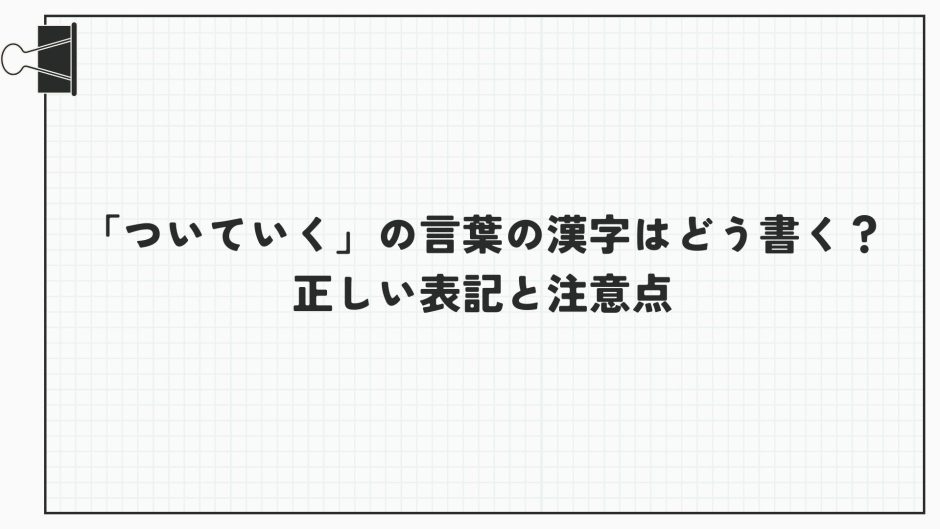 「ついていく」という言葉、普段の会話ではよく使うけれど、いざ漢字で書こうとするとちょっと迷ってしまう人も多いのではないでしょうか。