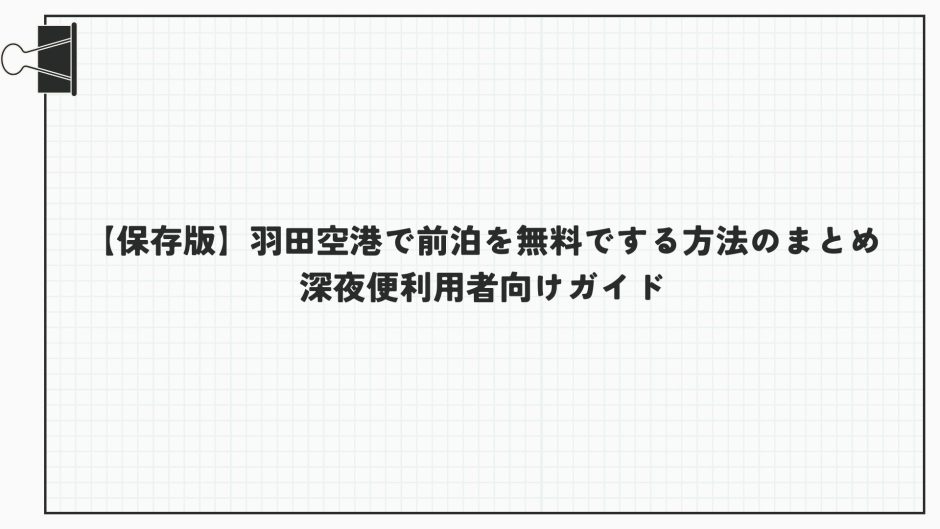 この記事では、羽田空港で無料前泊が可能な場所やその仕組み、実際に利用する際の注意点・テクニックを詳しくご紹介します。