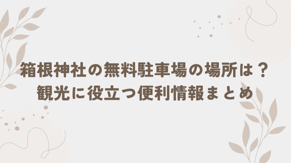 - 1. はじめに|「箱根神社 駐車場 無料」を検索する人の悩みとは?