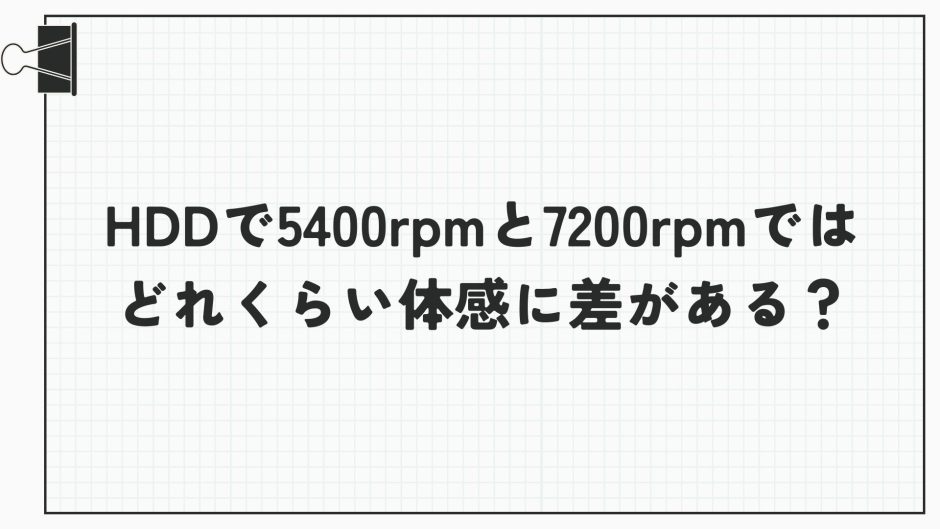 特に中古のノートパソコンや、長年使っているデスクトップPCなどでは、5400rpmのHDDが搭載されていることが多く、それに比べて7200rpmのHDDが「速いらしい」と聞けば、違いを体感で知りたくなるのは自然なことです。