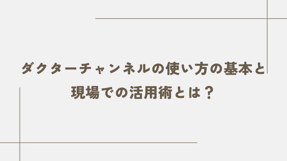 2. ダクターチャンネルの使用シーンと具体的な用途