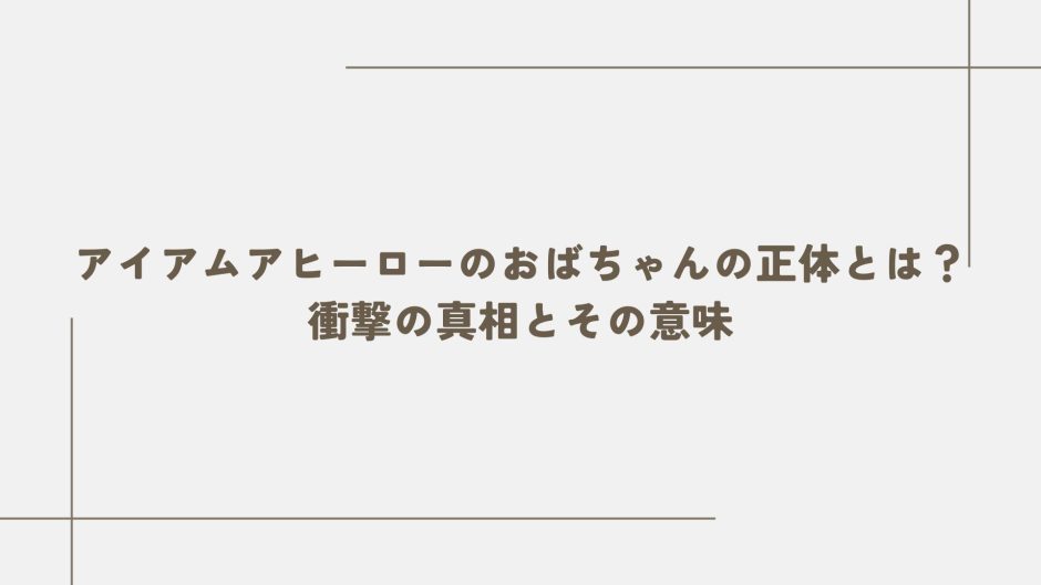 『アイアムアヒーロー』に突如現れ、読者の記憶に強烈な爪痕を残した“おばちゃん”というキャラクター――彼女は一体、何者だったのでしょうか?若返り、母となり、進化の象徴として描かれたその姿に、多くの読者が戸惑い、魅了されました。本記事では、おばちゃんの登場シーンから変貌、他キャラとの関係性、そして作品全体における象徴性までを徹底的に整理・考察します。