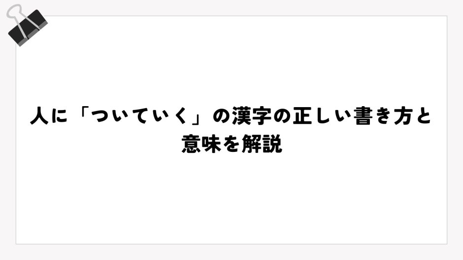 この記事では、「人についていく」という言葉の正しい漢字表記について、わかりやすく解説していきます。