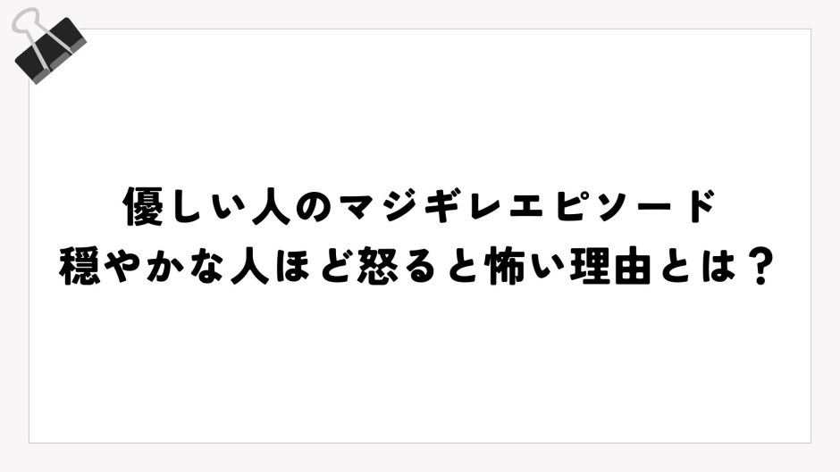 いつも穏やかで優しい人が、ある日突然「マジギレ」した——そんな場面に心当たりはありませんか?笑顔の奥で我慢が積み重なっていたとしたら、気づけなかった側の後悔は大きく、関係が一気に崩れることもあります。