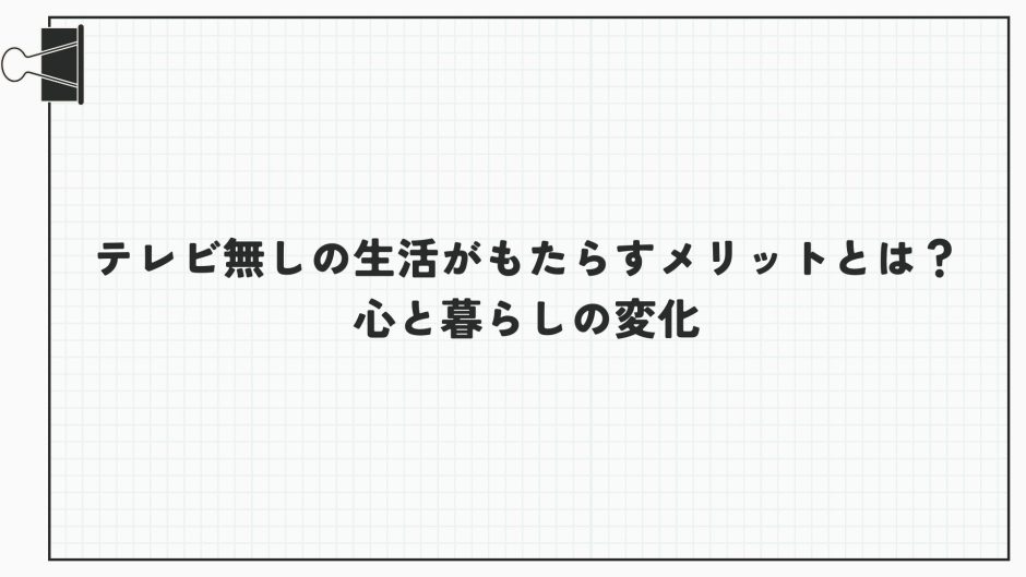 - 2. テレビ無し生活のメリット:やめた人が感じた7つの変化