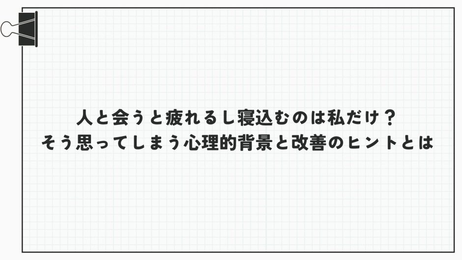 「人と会うと疲れて寝込んでしまう」――そんな悩みを抱える人は決して少なくありません。それはあなたの心が弱いからでも、人付き合いが下手だからでもありません。