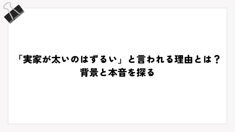 本記事では、「実家が太い」という言葉の意味から、それがもたらす構造的なアドバンテージ、そしてその差に直面した人々のリアルな声までを丁寧に掘り下げます。