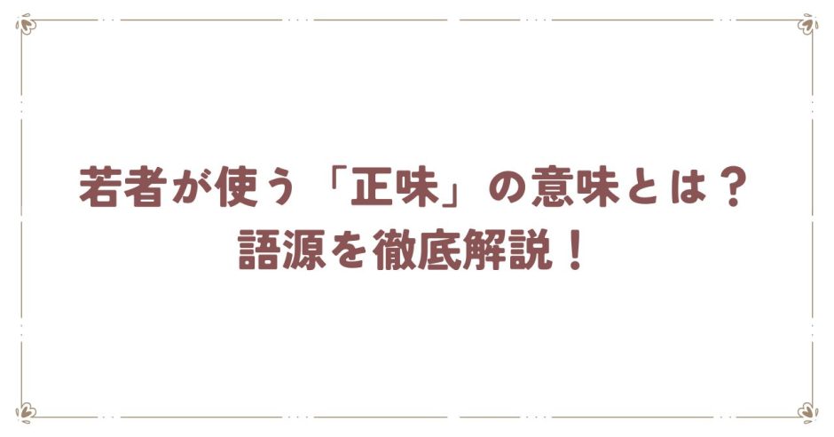 「正味ってどういう意味?」——最近、SNSや若者の会話でよく耳にするこの言葉。