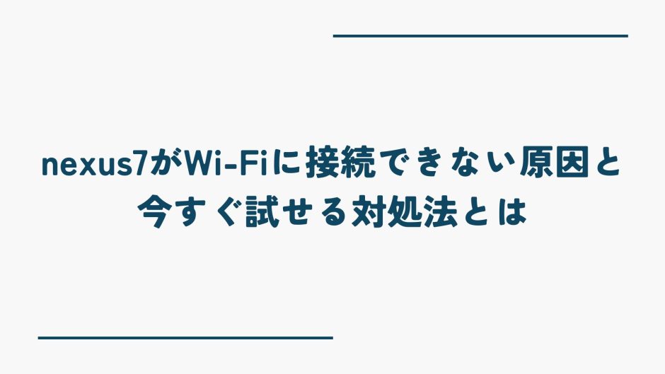 本記事では、Nexus7でWi-Fi接続ができないときに考えられる原因と、その解決方法を順を追って解説します。まずは、端末やルーター側でできる基本的な確認事項を整理し、そのうえで改善が見られない場合の追加対処法を紹介します。