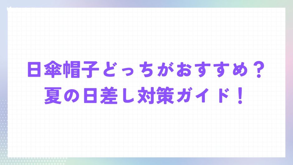 その中で、「日傘と帽子、どっちが紫外線に強いの?」「使い方が間違っていたら意味がないのでは?」という不安が検索の背景にあるのです。