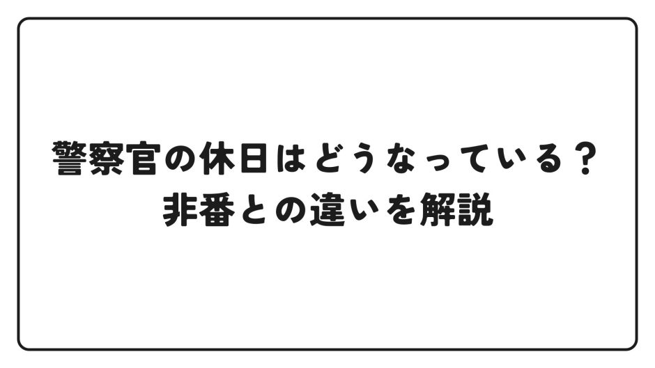 「警察官って休日あるの?」「非番や明けは休み扱い?」――検索しても用語が難しく、結局どれくらい休めるのか見えにくいですよね。