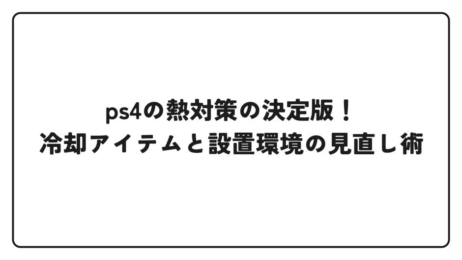 PS4は高性能なゲーム機である一方、長時間のプレイや通気性の悪い環境では熱がこもりやすくなります。そのため、ただ単に設置場所を変えるだけでなく、冷却グッズを使った熱対策がとても有効です。この記事では、冷却シート・熱伝導テープ・ノートPC用冷却台といった冷却グッズの使い方や効果的な活用方法を詳しく紹介します。