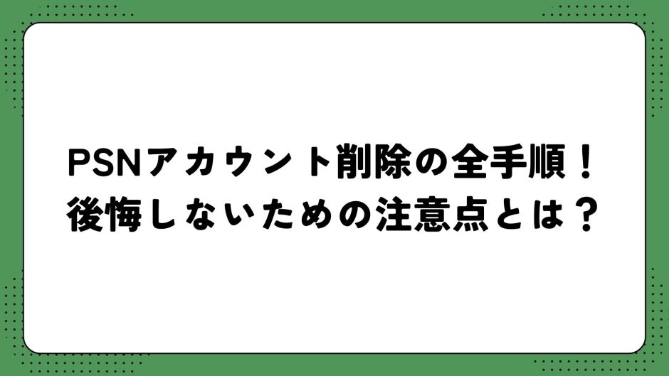 PlayStation Network(PSN)のアカウントを削除する前に、確認すべきポイントがいくつかあります。アカウントを削除すると、復旧できない情報があるため、慎重に手続きを進めることが大切です。また、削除手続きをスムーズに進めるためのコツも紹介しますので、ぜひ参考にしてください。