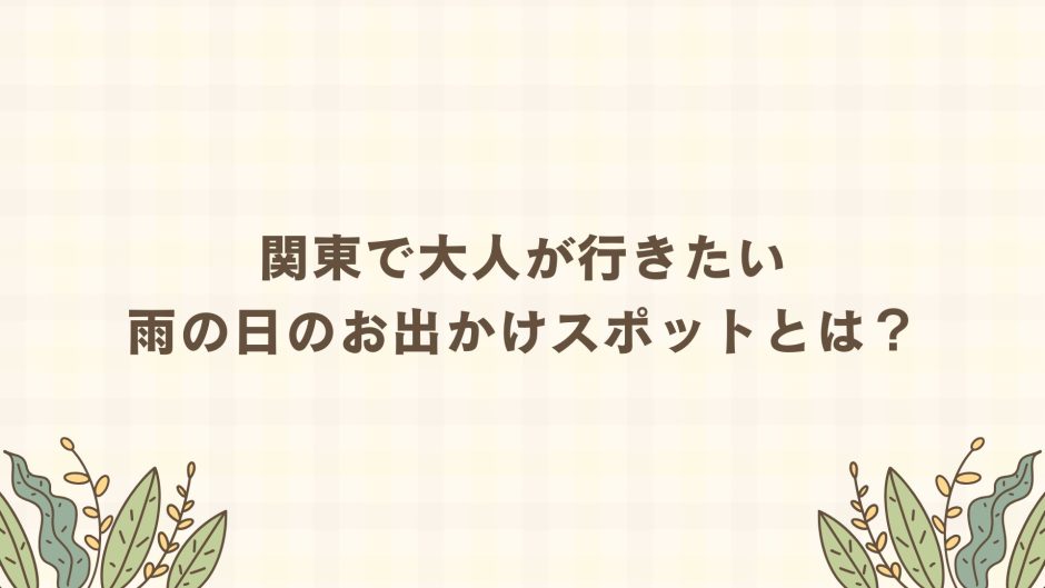 雨の日だからといって、家でじっとしているのはもったいない!関東には、大人が楽しめる魅力的な屋内スポットがたくさんあります。のんびりリラックスしたい人も、アクティブに楽しみたい人も、自分にぴったりのお出かけ先を見つけましょう。