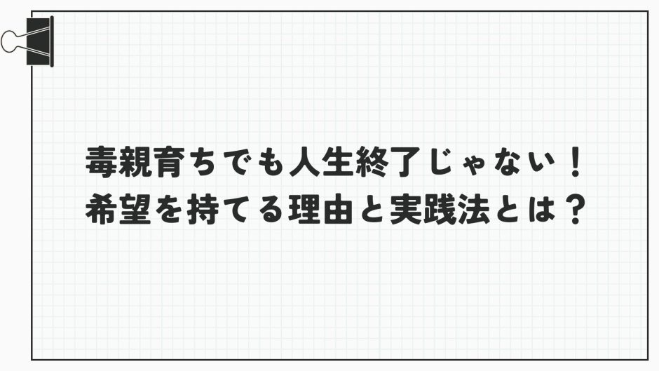 「毒親育ちなんて人生終了」──そんな風に思い詰めて検索したあなたに、まず伝えたいことがあります。