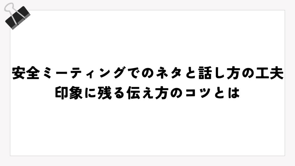 安全ミーティングで「何を話せばいいのか…」と悩むことはありませんか?