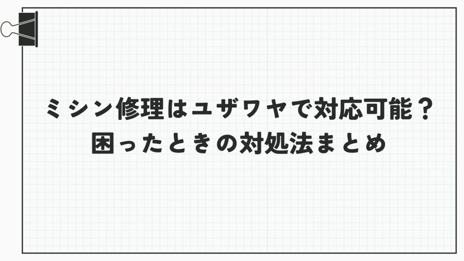 「ユザワヤで買ったミシンが突然動かなくなった…」そんなとき、どこに相談すればいいのか迷ってしまう方は多いのではないでしょうか。この記事では、ユザワヤ限定モデルに特有の修理事情から、症状別のトラブル事例、信頼できる修理先の選び方、費用や期間の目安まで、初めての方でも安心して対処できる情報を網羅しています。