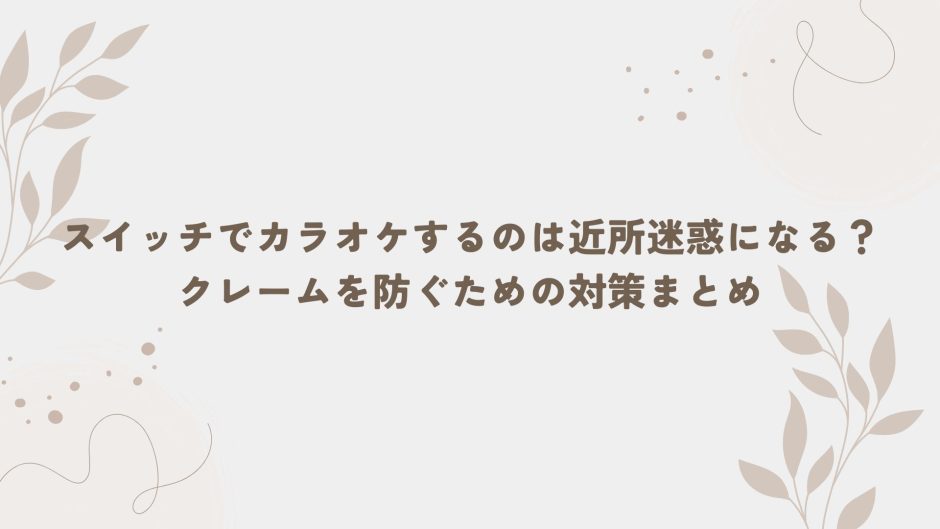 配信や録音を行うようなヘビーユーザーであれば、防音室の導入も視野に入れましょう。自分だけで楽しむ時間だからこそ、周囲への配慮と音環境の整備は大切なマナーです。スイッチカラオケを長く楽しむためにも、ぜひ自分に合った対策を実践してみてください。