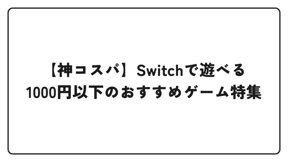 1. はじめに:Switchで「1000円以下ゲーム」を探す理由と魅力
