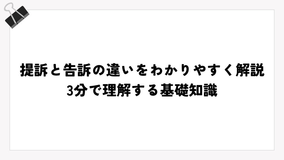 「提訴」は民事で裁判スタートの申立て、 「告訴」は刑事事件で捜査を求める行動、 「起訴」は刑事裁判を始める検察の決定――この3つを一緒に覚えておくと安心です。