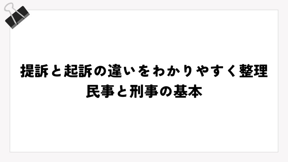 このように、民事では“損害の埋め合わせ”が目的で、刑事では“罪に対する罰”が目的です。 どちらも裁判所で争いますが、登場人物も役割も目的も、全然違うんですね。 「提訴」と「起訴」の違いも、この構図を理解すれば、グンとわかりやすくなるはずですよ。