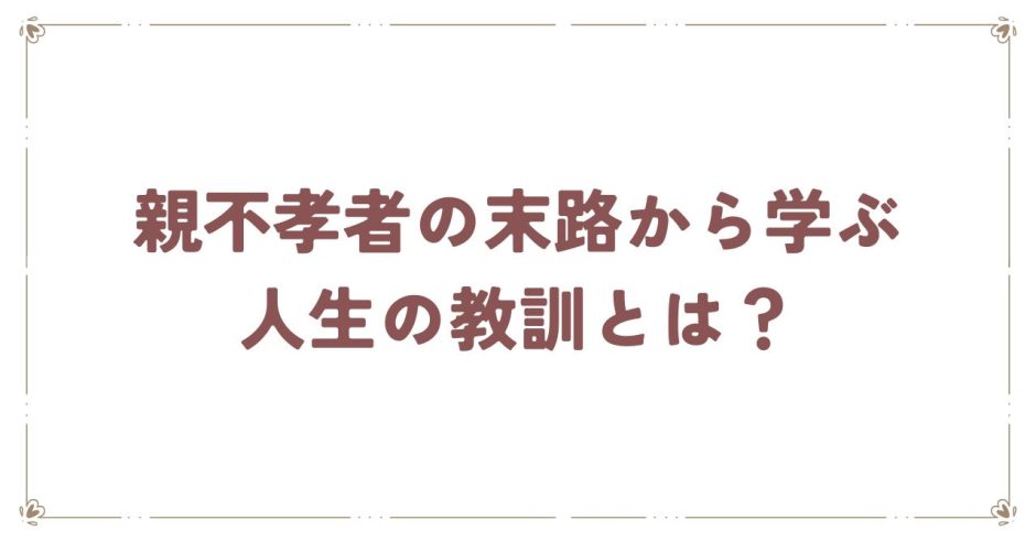 「親不孝者の末路」とは、親を大切にせず、感謝の気持ちを忘れたまま生きた人が最後に迎える心の孤独や後悔、社会的な孤立を指します。