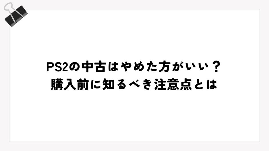 次章からは、「PS2中古はやめた方がいい」と言われる理由や、中古購入で失敗しないための具体的な注意点について詳しく解説していきます。