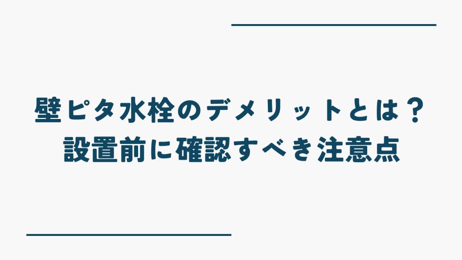壁ピタ水栓は、あくまで特定の課題に対する解決策であり、すべての家庭にとっての万能な選択肢ではありません。コスト面、構造面、管理規約面など、あらゆる角度から検討したうえで導入することで、後悔のない選択ができるでしょう。