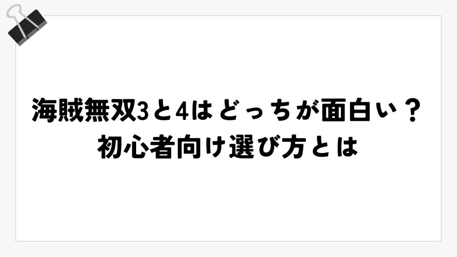 この記事では、そんな悩みを持つ方のために、「海賊無双3」と「海賊無双4」の違いと共通点をしっかり比較し、それぞれのおすすめポイントを丁寧に解説していきます。