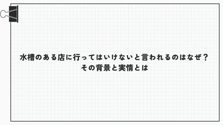 1. はじめに:なぜ「水槽のある店 行ってはいけない」と言われるのか?